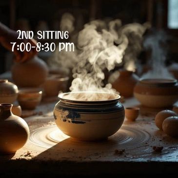 There is a bar for beverages and you will also be served dessert. You will have access to our members pottery market to purchase many pottery items for sale. In addition to this, we also will have door prizes and a penny parade raffle!